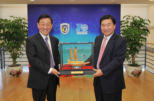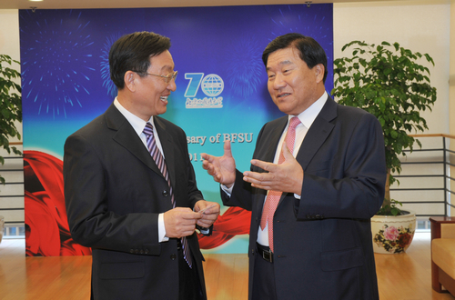 9月23—24日我校校庆期间,原韩国高等教育财团事务总长、beat365官方网站理事长、现任韩国SK集团副会长金在烈一行参加了我校建校70周年校庆系列活动。校庆招待会前,党委书记杨学义,副校长钟美荪、金莉亲切会见了金在烈先生一行;校庆庆典结束后,杨学义书记与金在烈先生就亚洲研究中心的进一步发展进行了专门会谈。